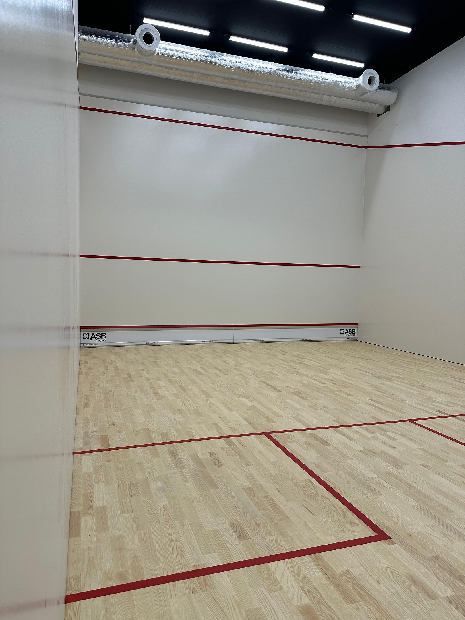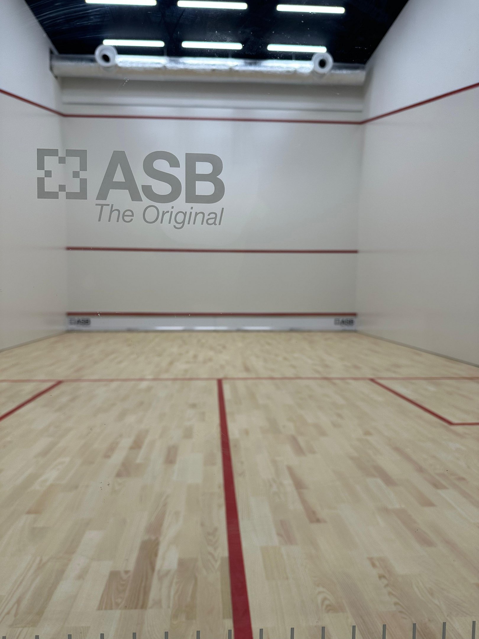 Courts de squash - ASB System40 Parois - ASB System40 Parois - ASB Pro GlassBackWall Planchers - ASB SportsFloor Accessoires - ASB Height AdjustableTin