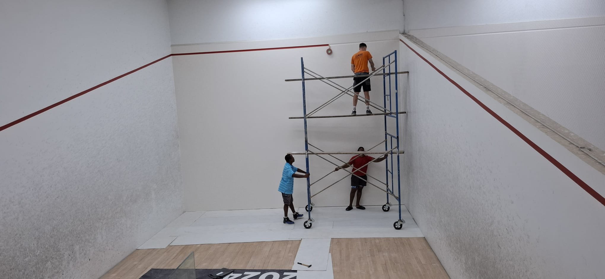 Located in the heart of Port of Spain, Trinidad and Tobago, the Queen’s Park Cricket Club (QPCC) established in 1891 is one of the oldest and most prestigious sports institutions in the Caribbean, renowned for its rich cricketing history and its evolution into a multi-disciplinary athletic hub. Most well known for its impressive Queen’s Park Oval, a historic ground that has hosted countless international matches, the club also features other sports. The club’s Racquet Centre boasts four international-standard squash courts, designed to meet the needs of both competitive players and recreational enthusiasts. This summer, ASB was asked to renovate the squash courts to ensure high end PSA events can be held on the courts. Our crew travelled to the island and installed ASB System40 wall panels along with new height adjustable aluminum tins, the proven renovation method by ASB around the world, preserving the rest of the courts to keep the impact mild and the down time of the courts low.